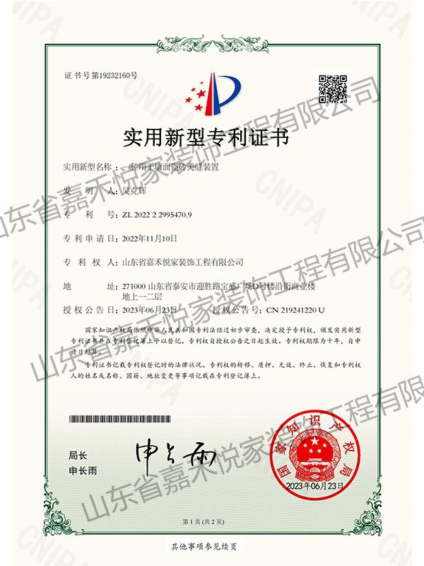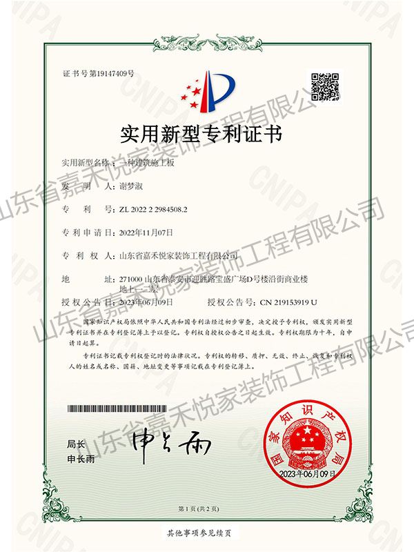 您当前位置:嘉和智悦(山东)建筑装饰设计工程有限公司【网站】 >> 专利证书 >> 频道首页